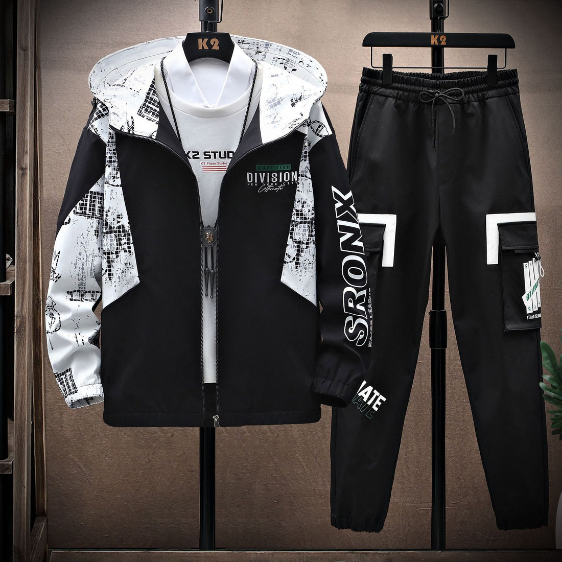 New Fashion Casual Lapel Jacket Cargo Pants Set