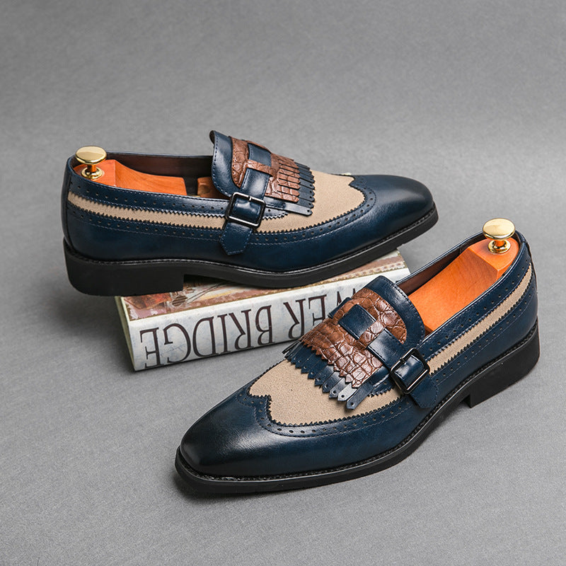 Men's New Fashionable All-match Color Matching Color Contrast Leather Shoes With Rubber Sole