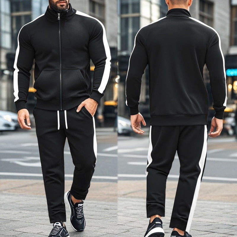 Autumn And Winter Two-piece Set Contrast Color Stand-up Collar Casual Sports Jacket Sweater Men's Suit
