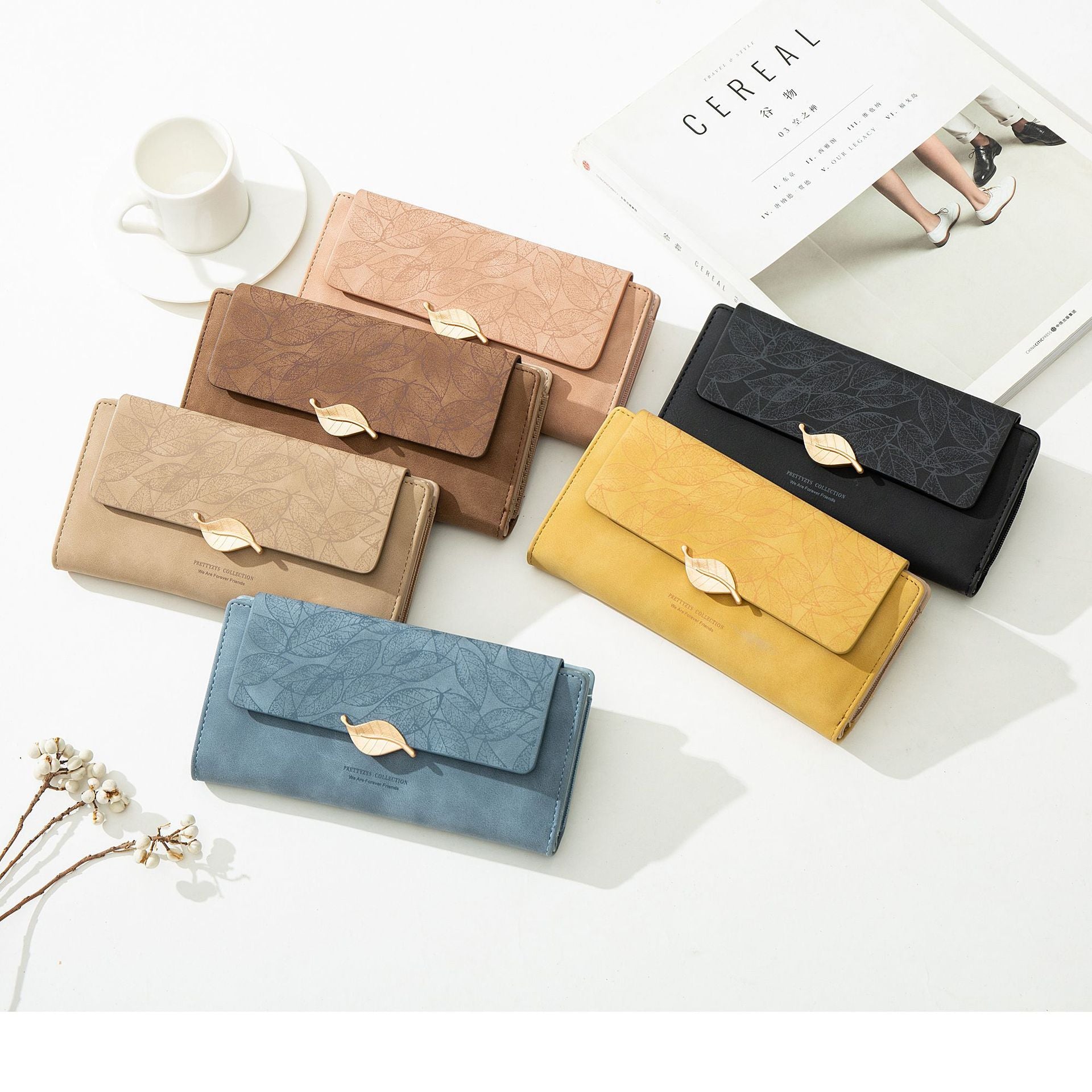 European And American Antique Frosted Leaf Buckle Long Handbag