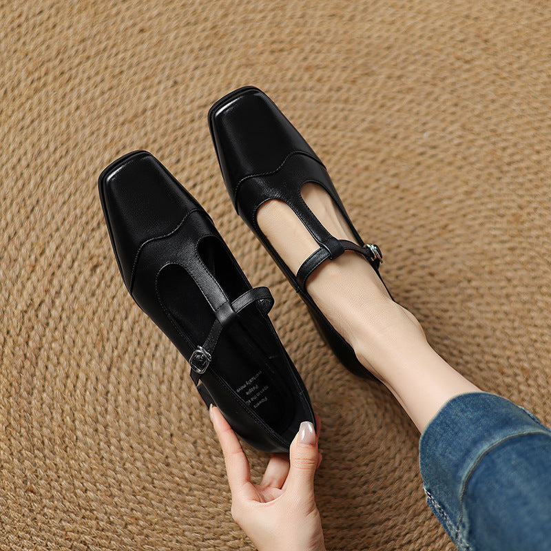 High Heel Vintage Leopard Print Square Toe Sheepskin Chunky Heel Pumps