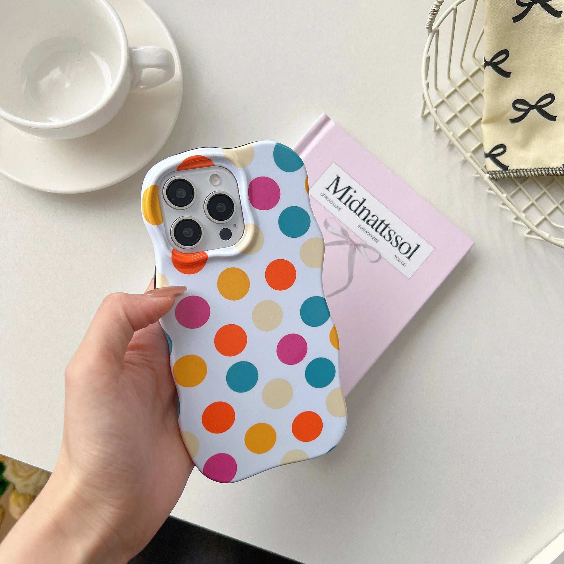 INS Cute Wave Fashion 2 in 1 Colorful Able Polka Dots Case For iPhone 16 15 14 13 Pro Max Camera Protect Shockproof Phone Cover