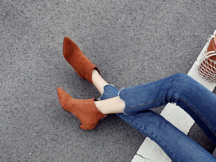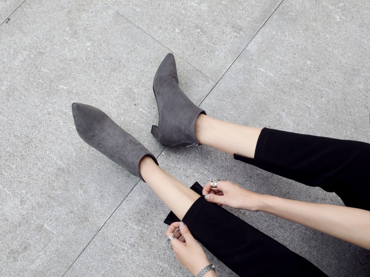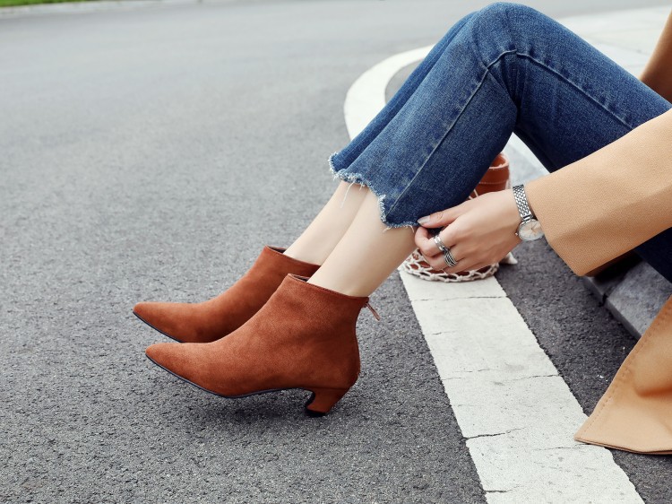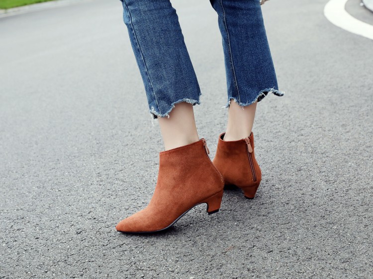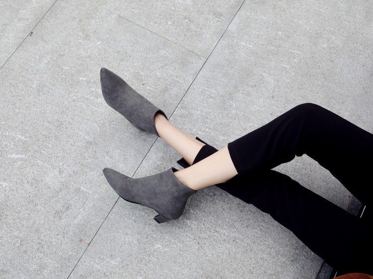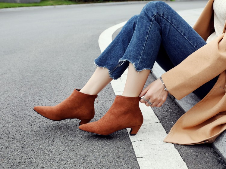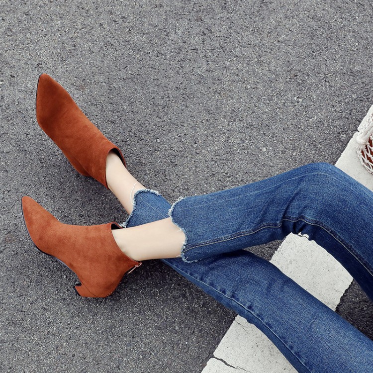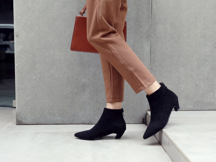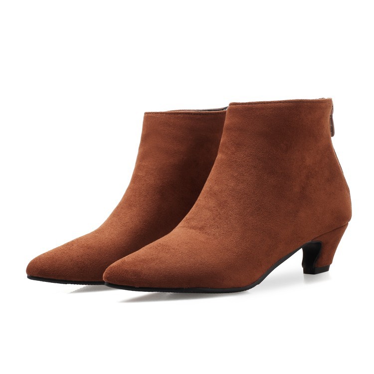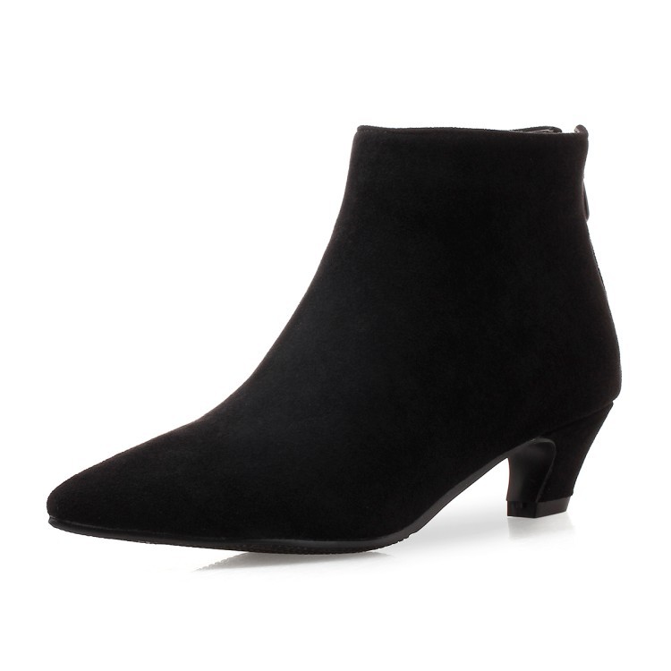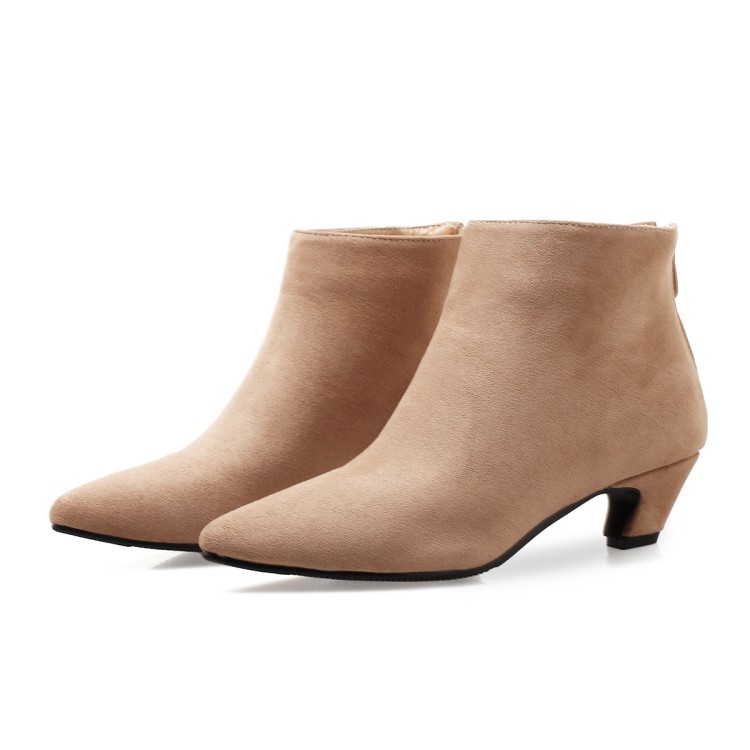 Large Size Mid Heel Pointed Ankle Boots Women