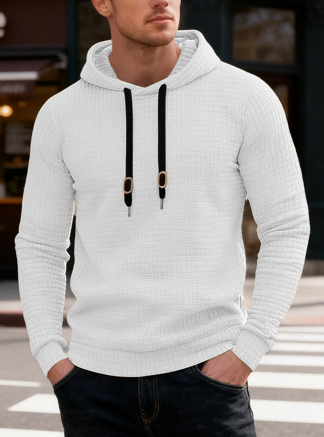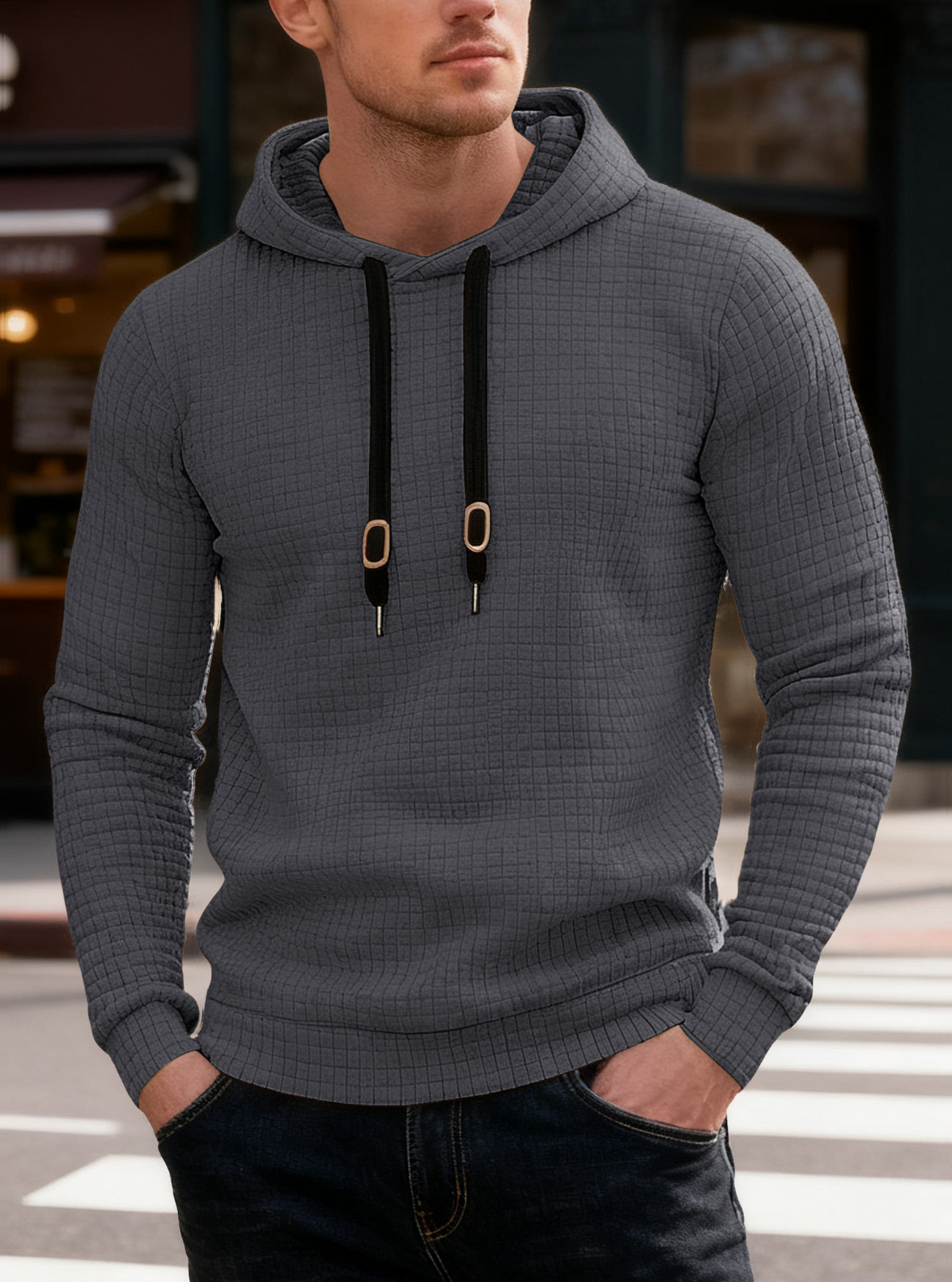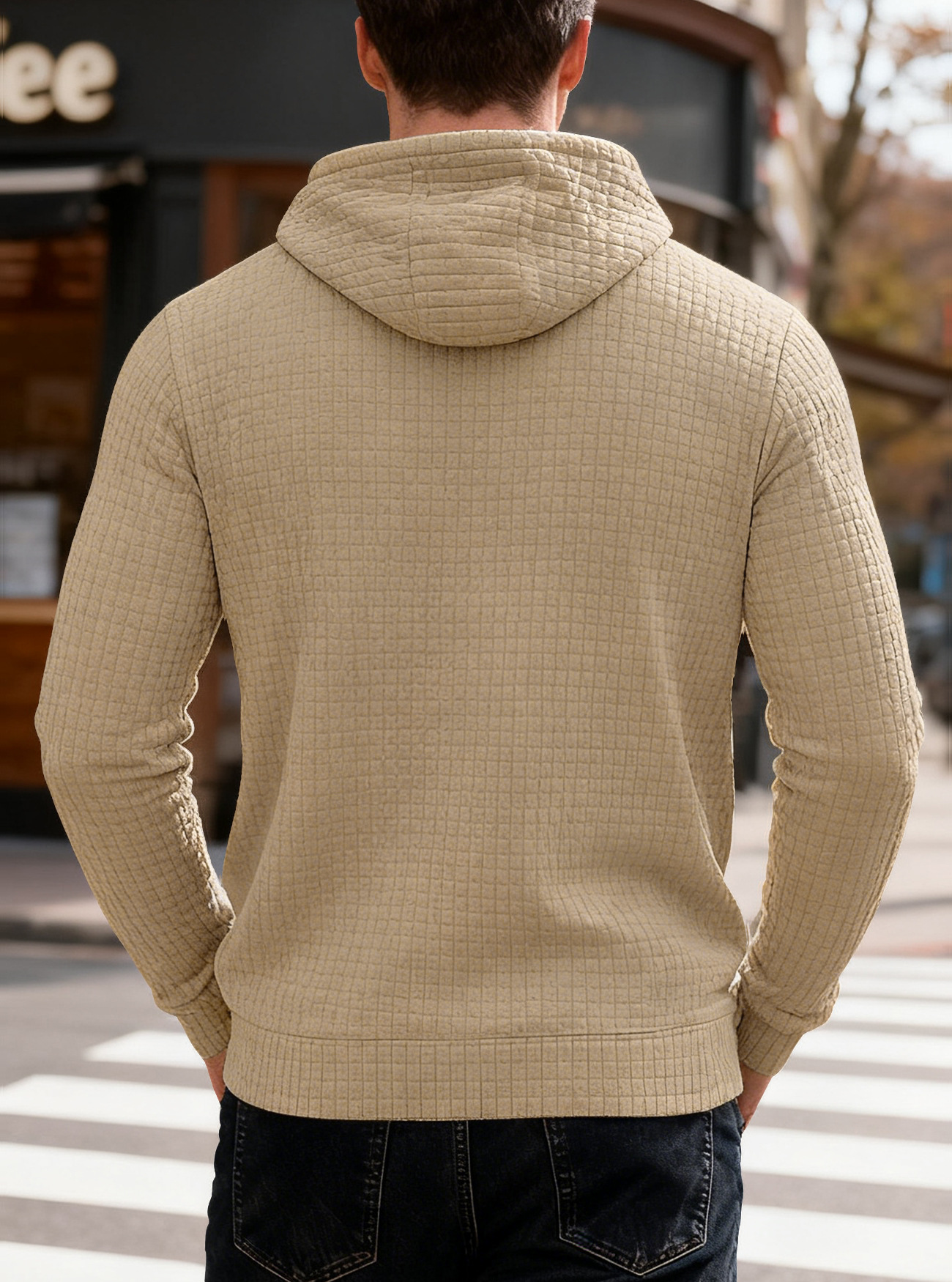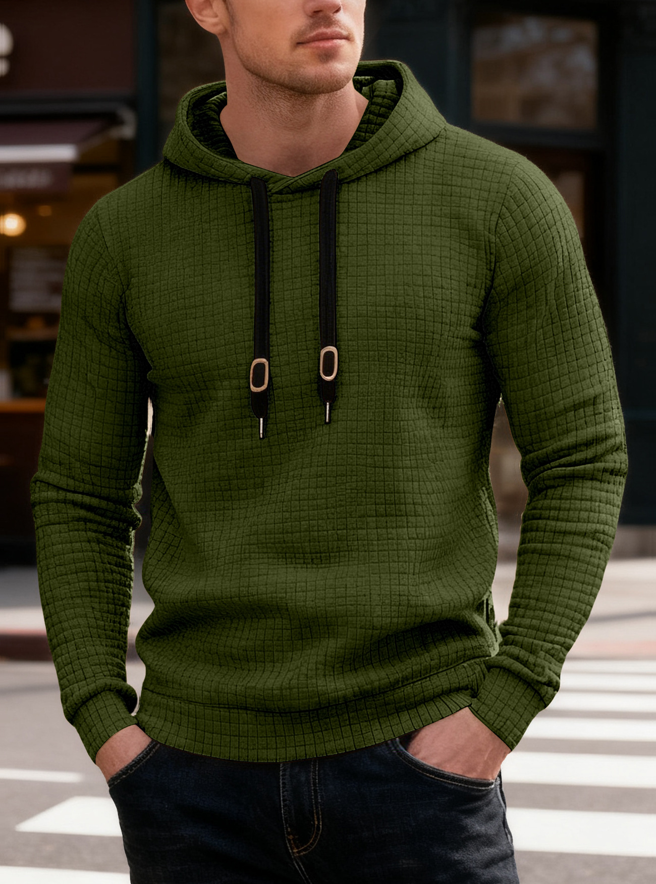 Men's Casual Long-sleeved Hooded Plaid Sweatshirt