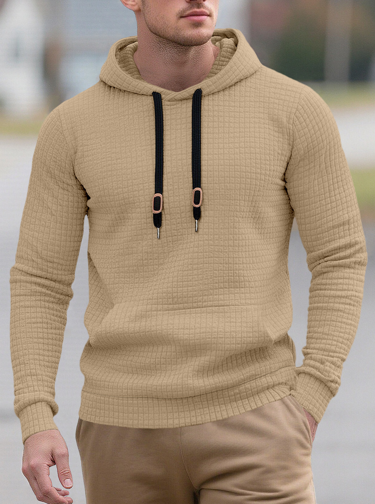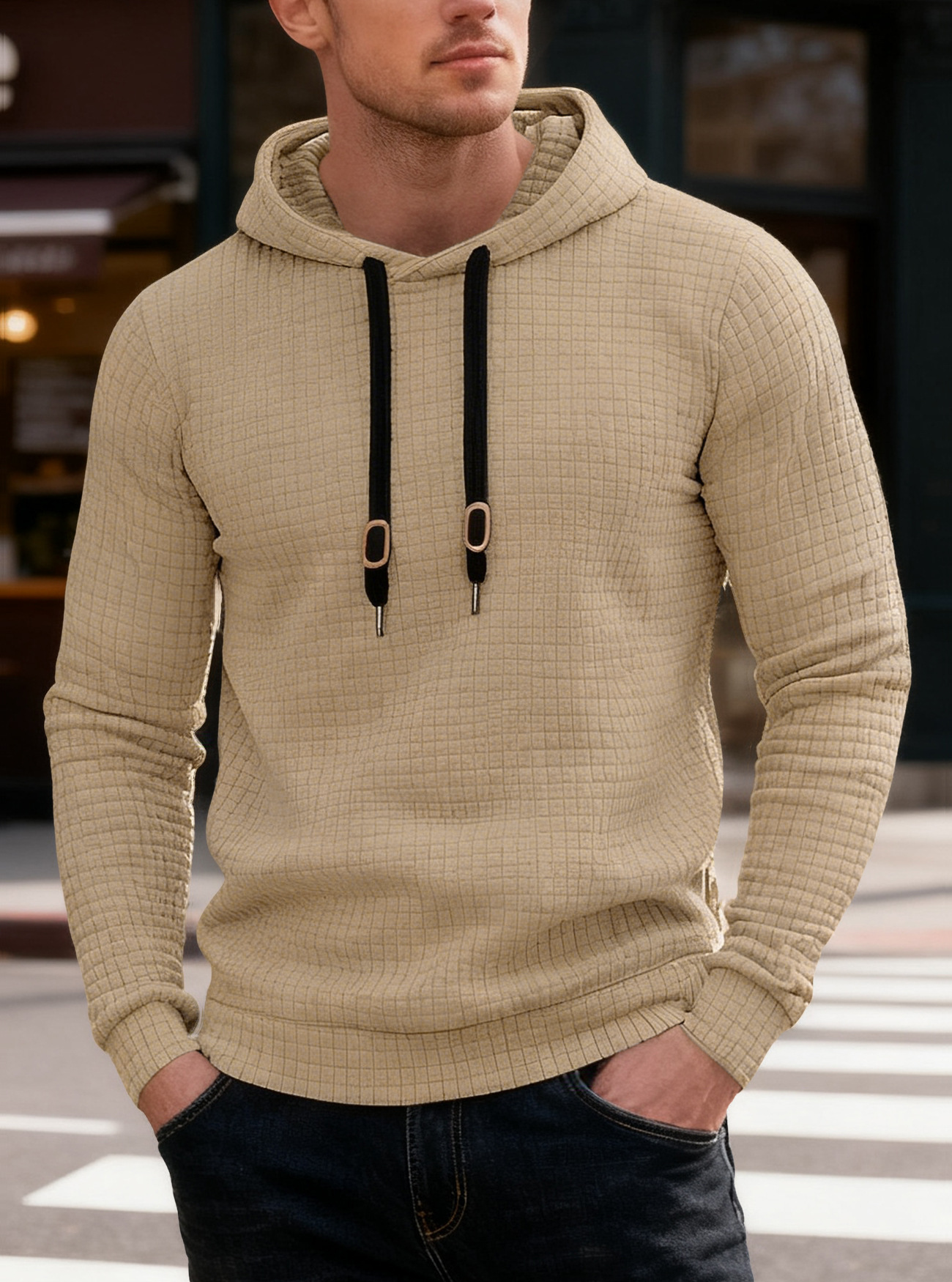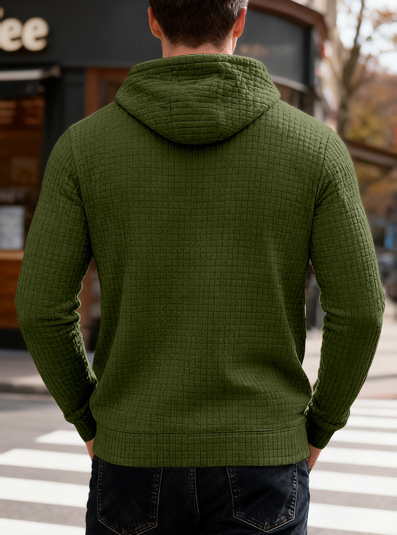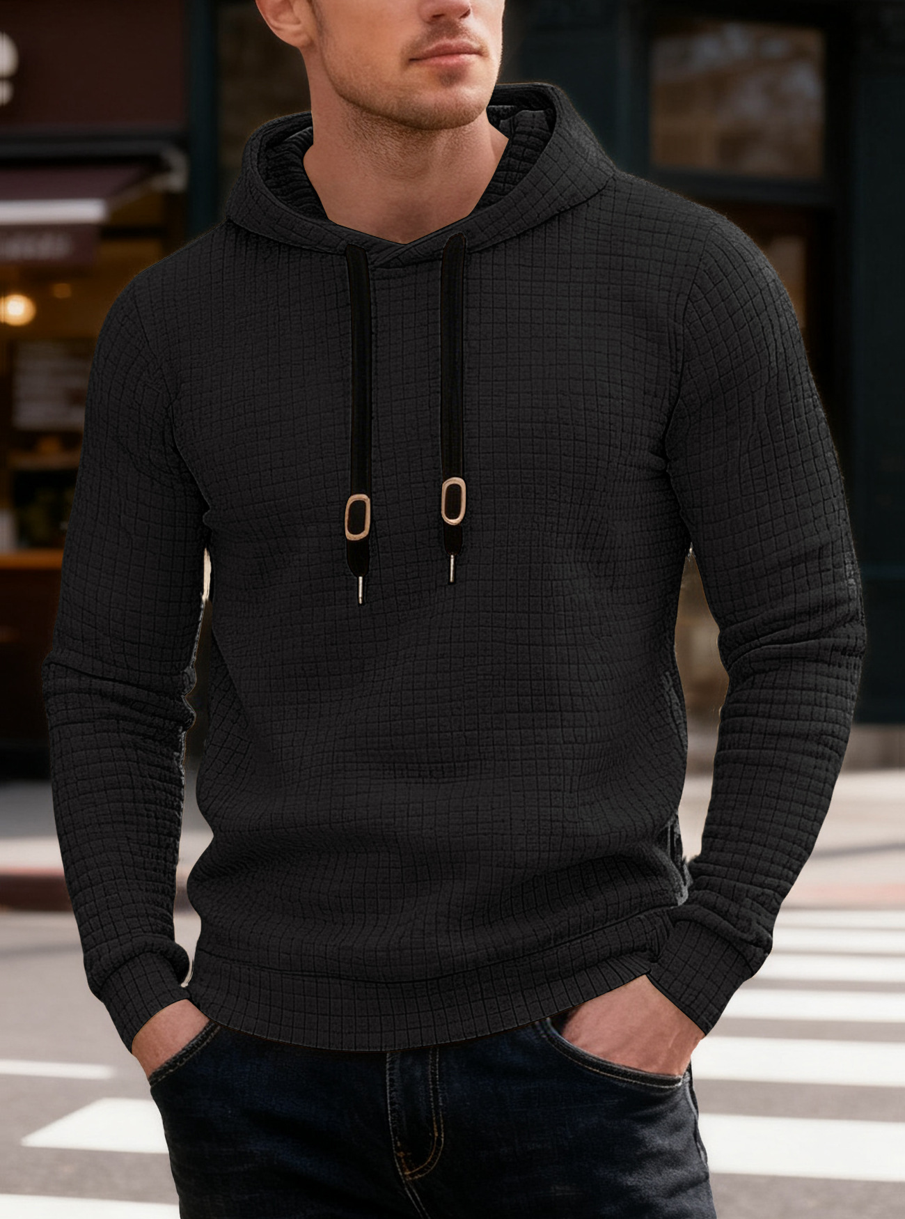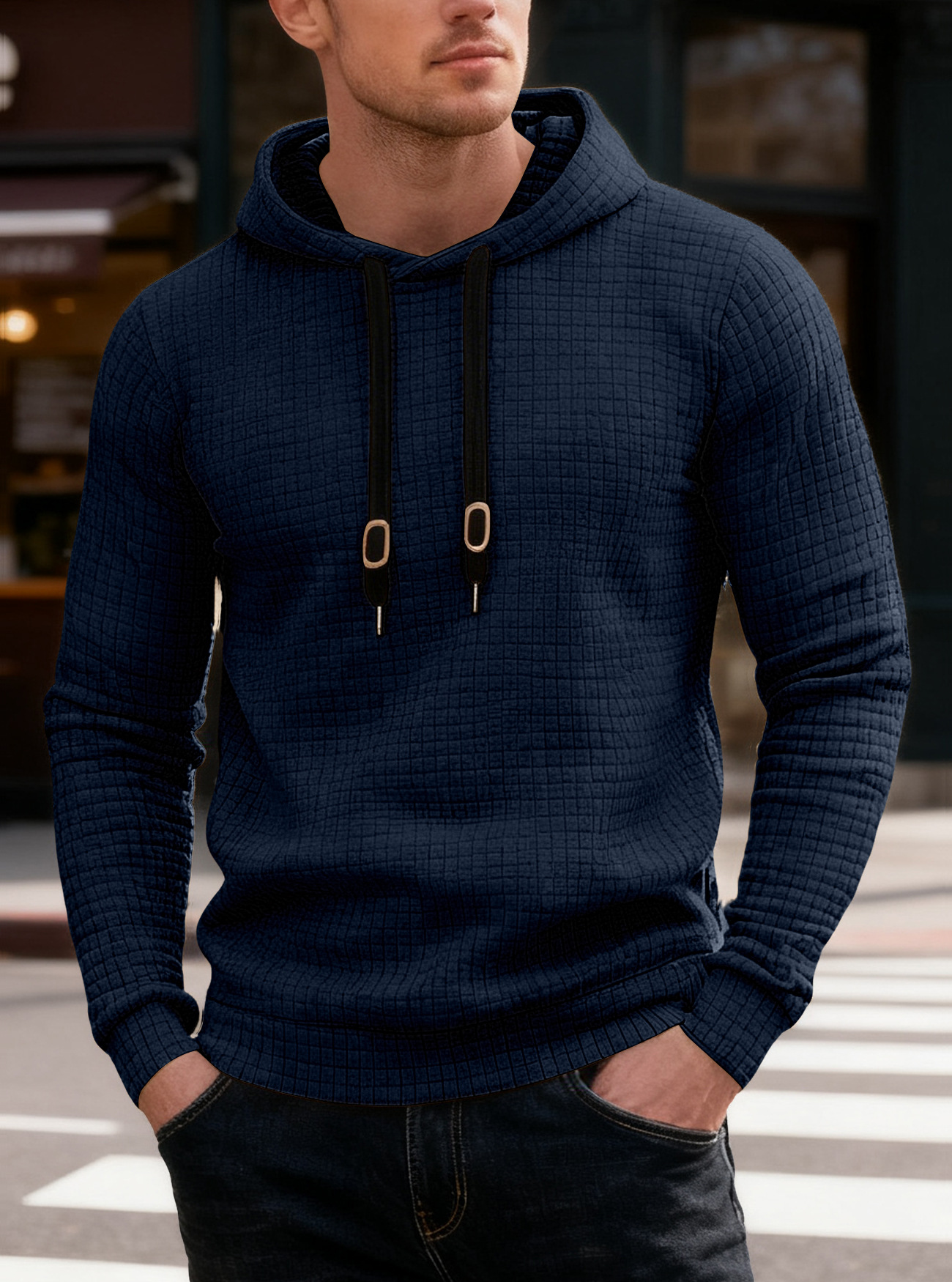 Men's Casual Long-sleeved Hooded Plaid Sweatshirt