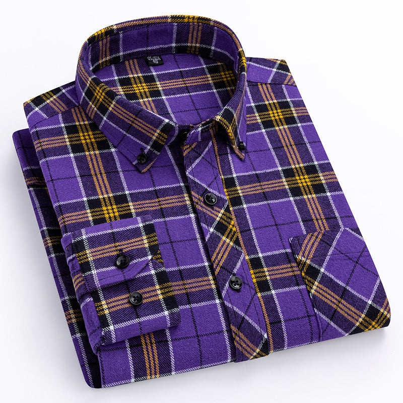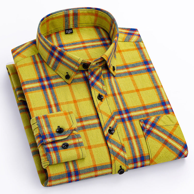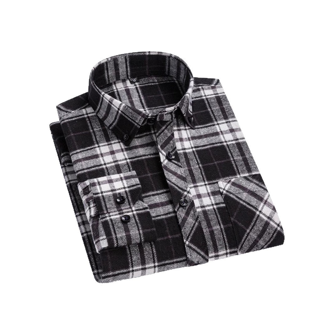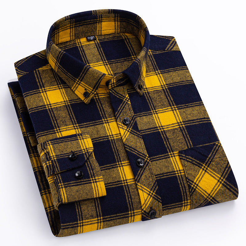 Men's Cotton Long Sleeve Brushed Plaid Leisure Work Daily Shirt