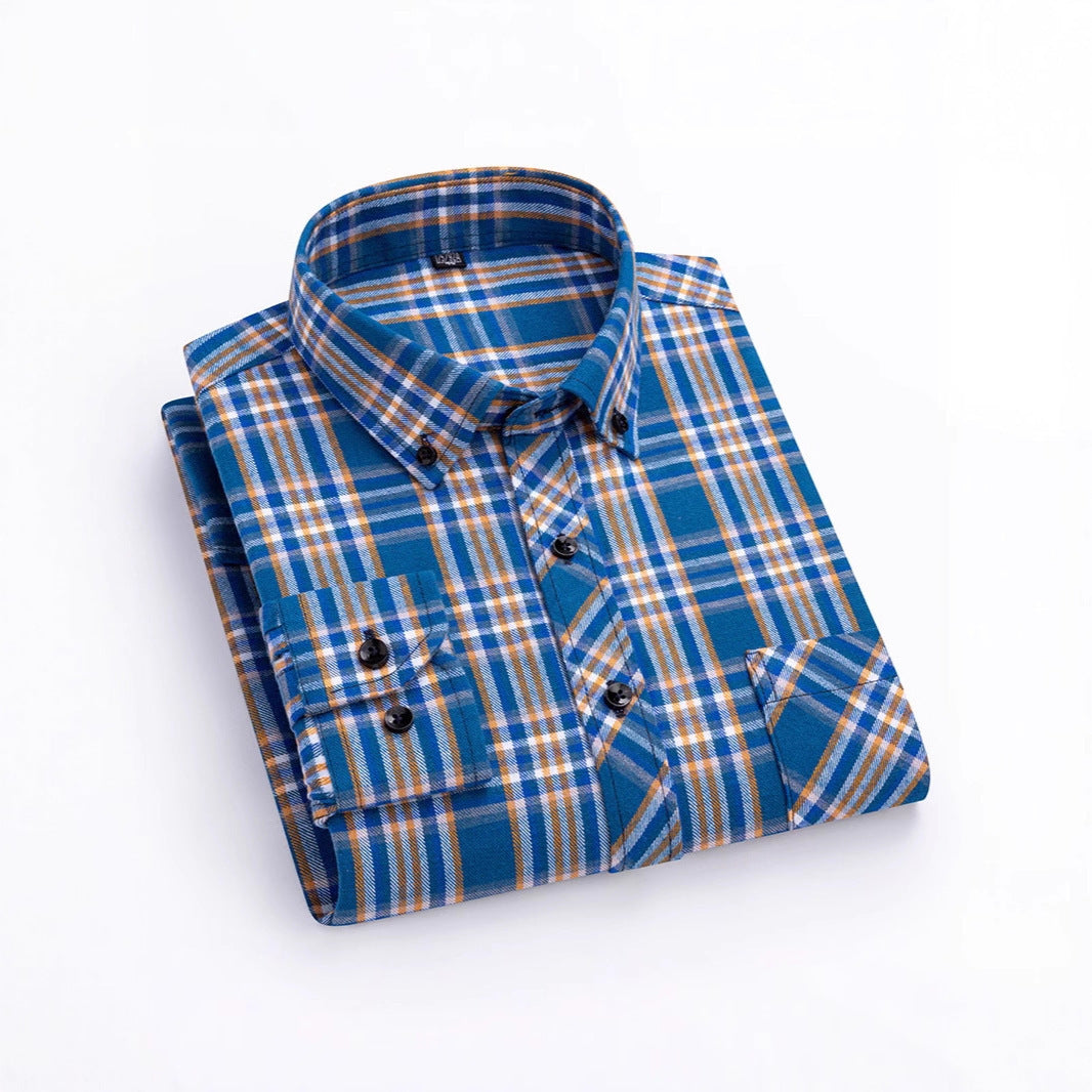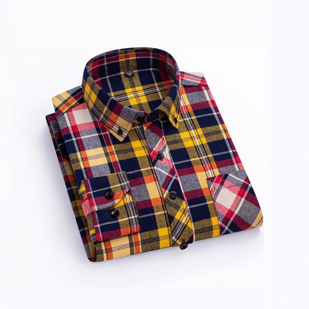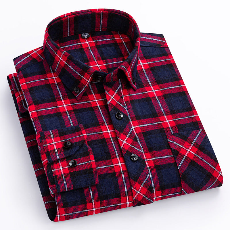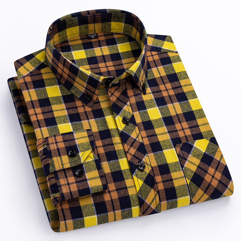 Men's Cotton Long Sleeve Brushed Plaid Leisure Work Daily Shirt