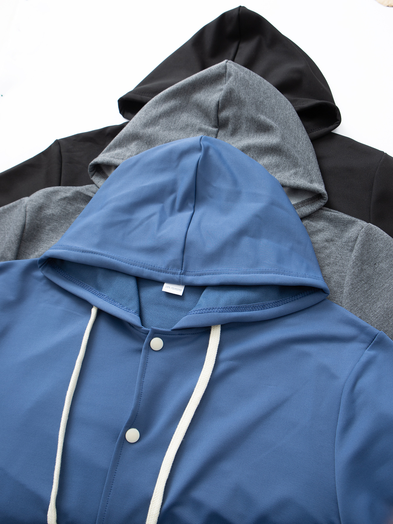 Men's Large Twill Hooded Baseball Jacket Cardigan Long Sleeve Pants Set