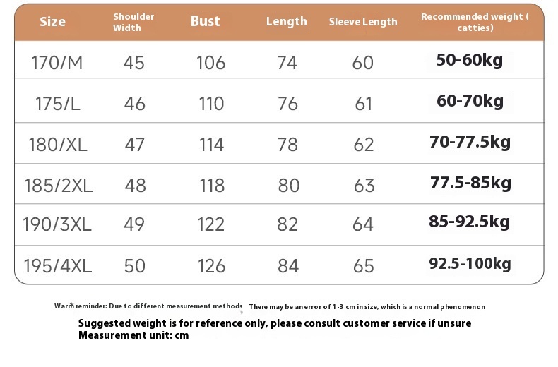 Size: 170/M,175/L,180/XL,185/XXL,190/XXL,195/XXXXL