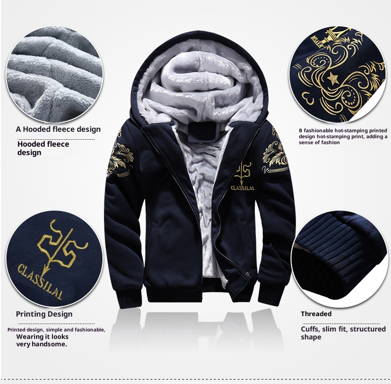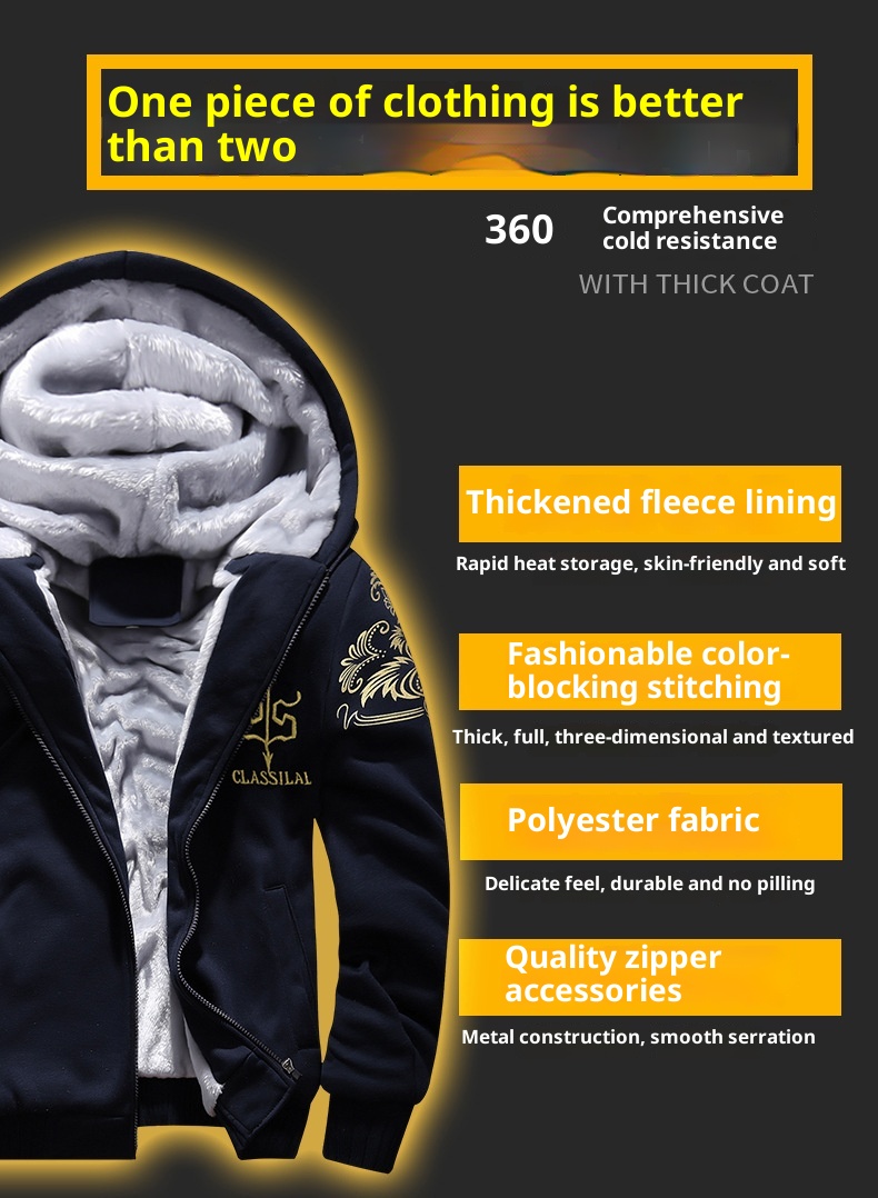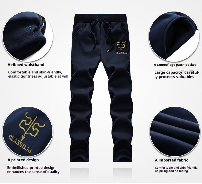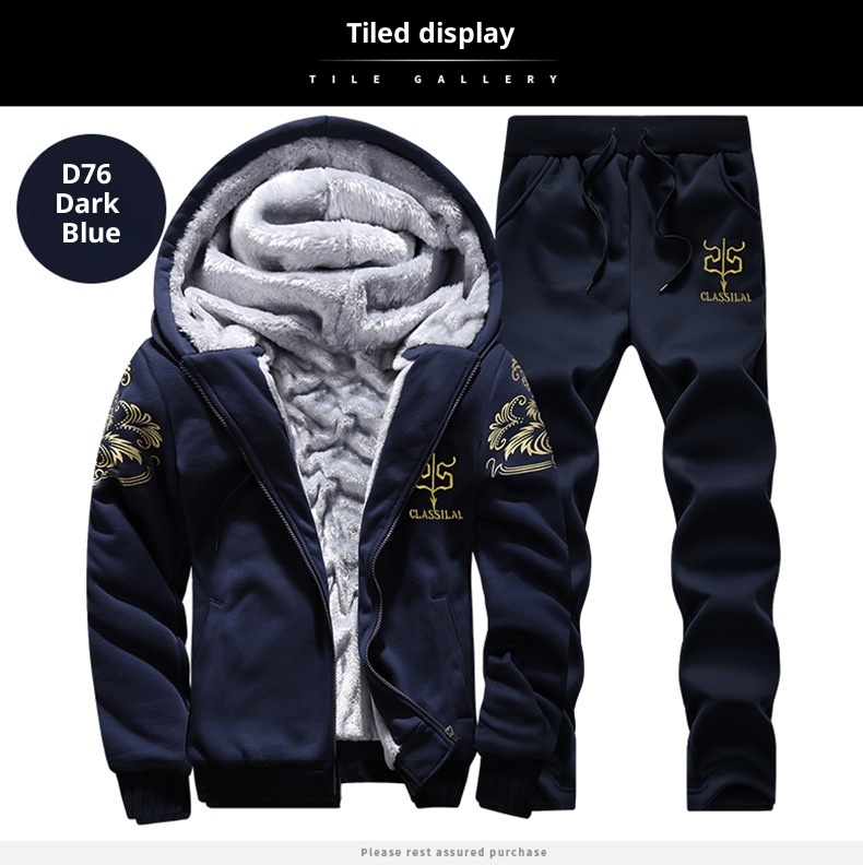 Plus-size Fleece-lined Thick Men's Casual Sport Two-piece Set