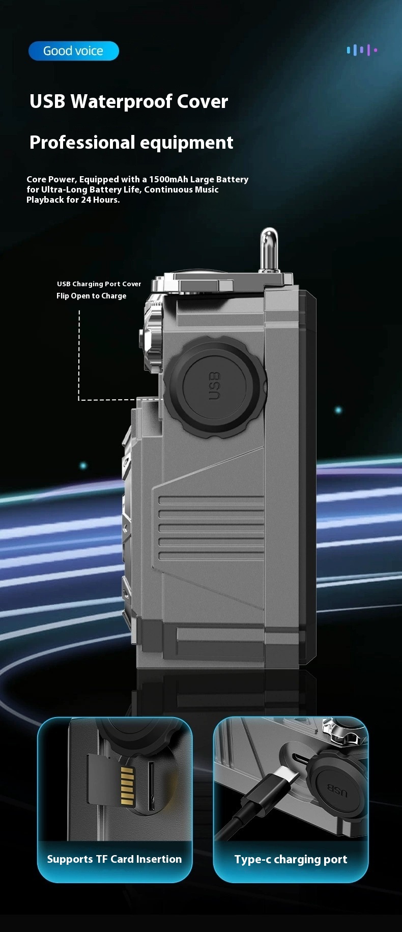 Audio system + charging cable + instruction manual *1