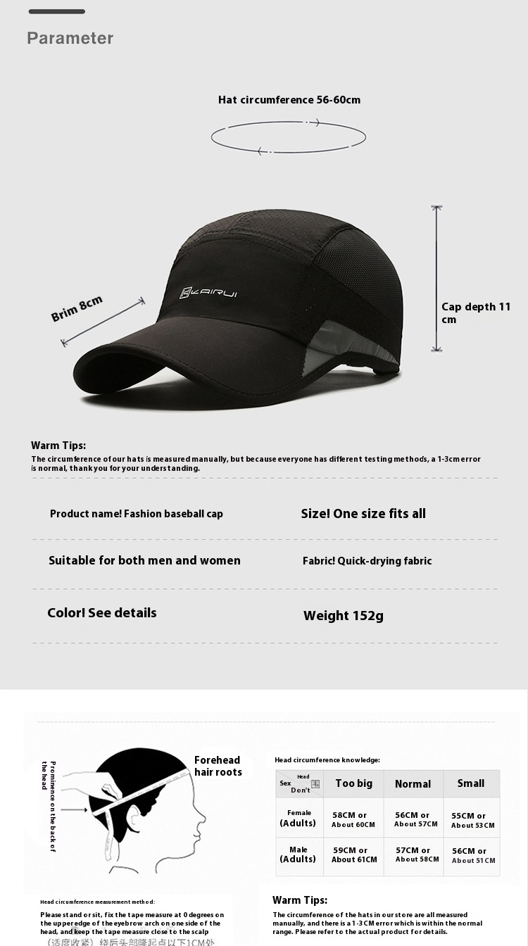 Quick-drying Hat Men's Summer Outdoor Sports Peaked Cap Couple Hats Hollow Lightweight Breathable