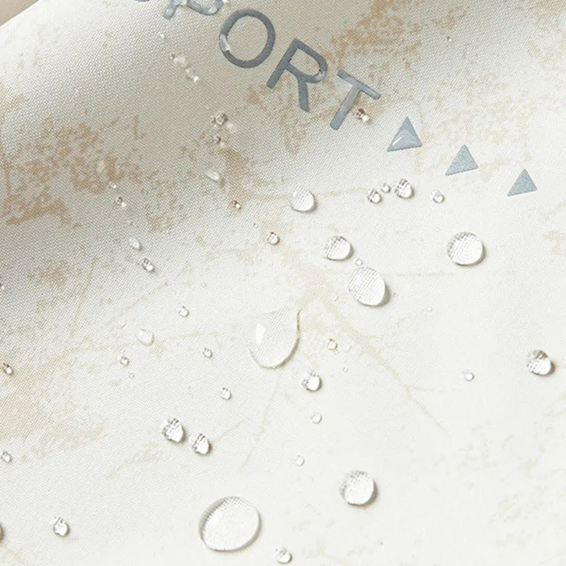 High-density technical fabric, lotus-leaf water-repellent effect, gathers water into beads, and rolls off the surface.