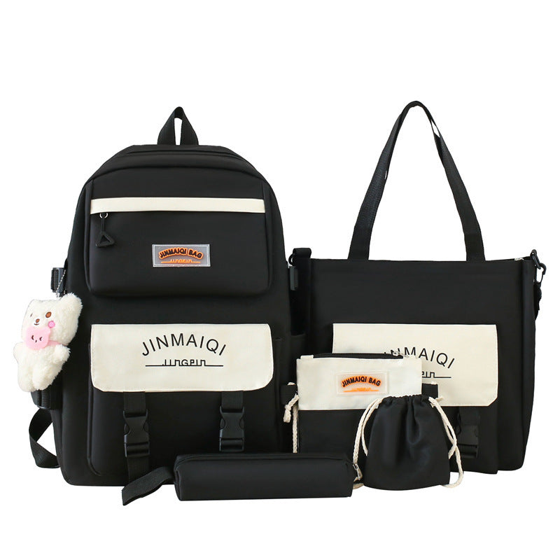 Schoolbag Women's Five-piece Backpack Large Capacity