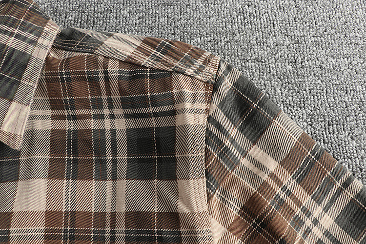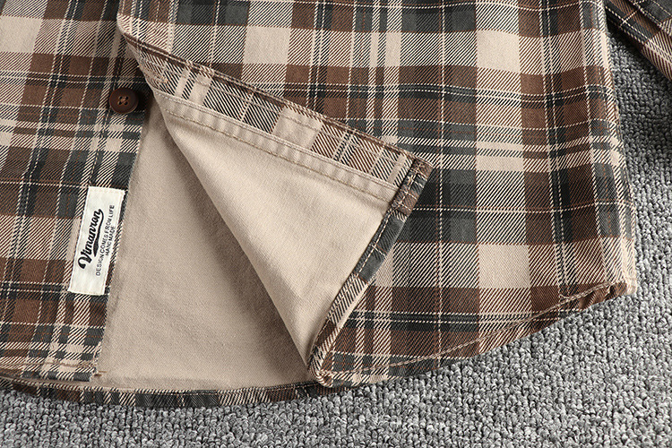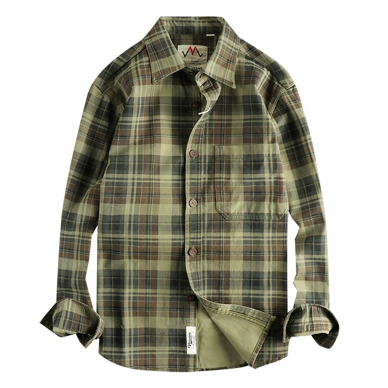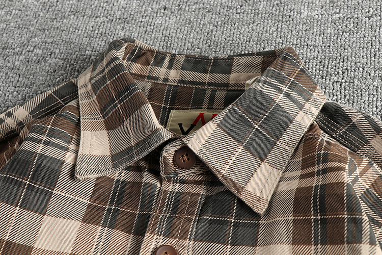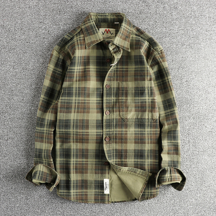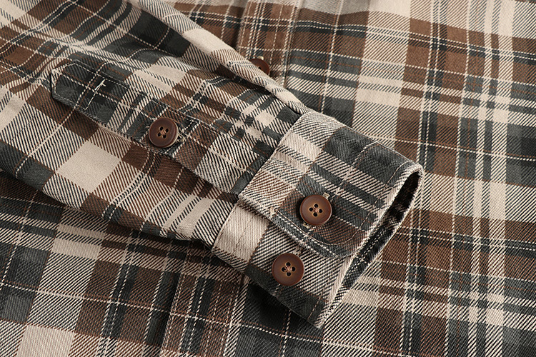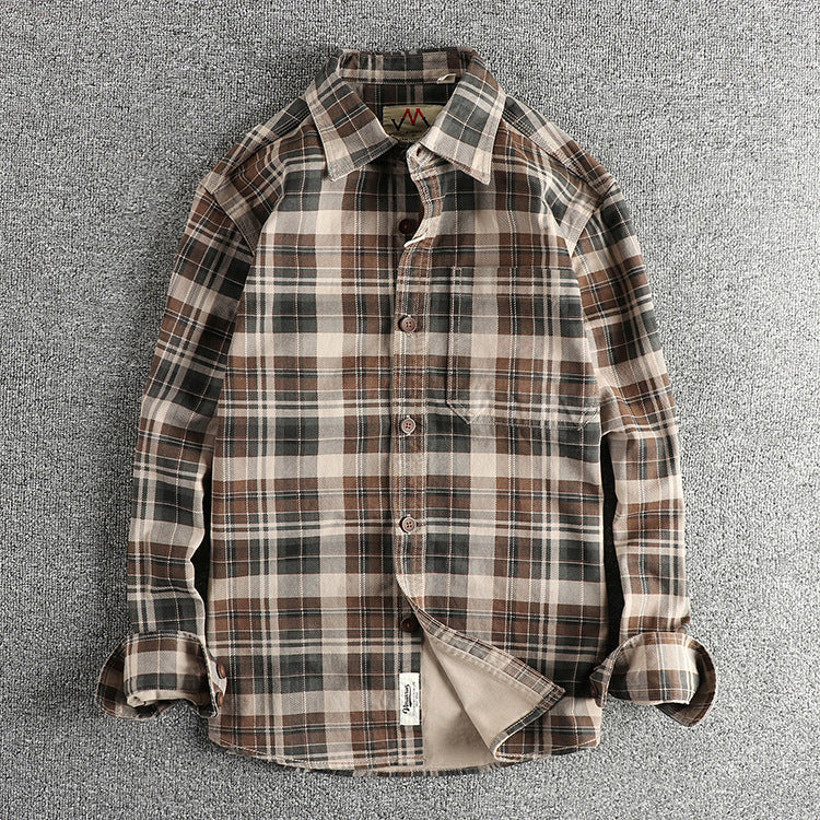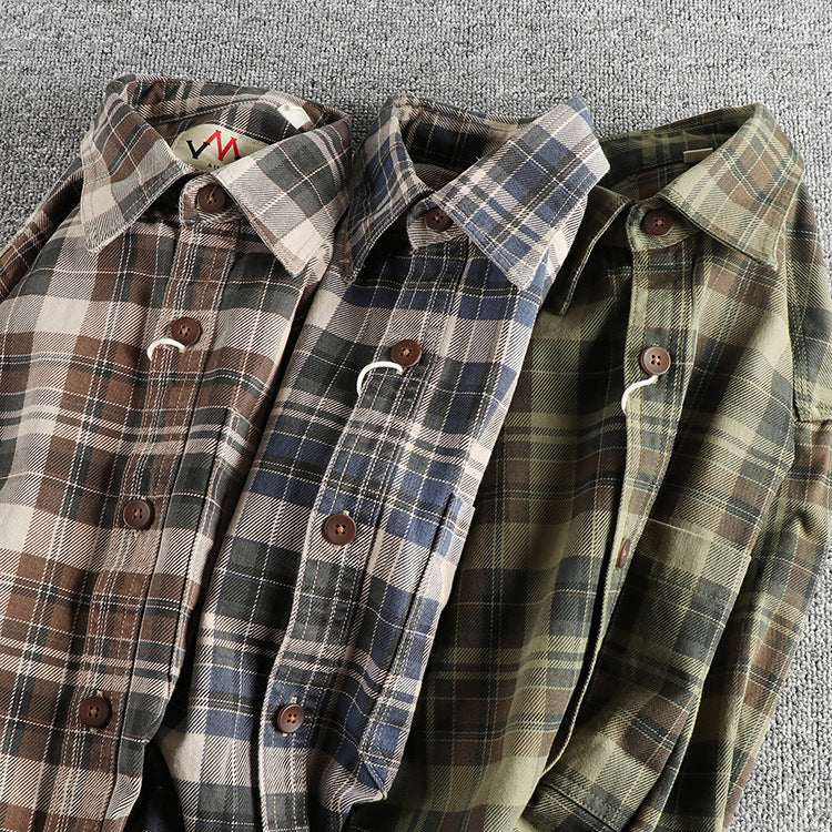 Thick Texture Washed Fashionable Plaid Long-sleeved Shirt For Men