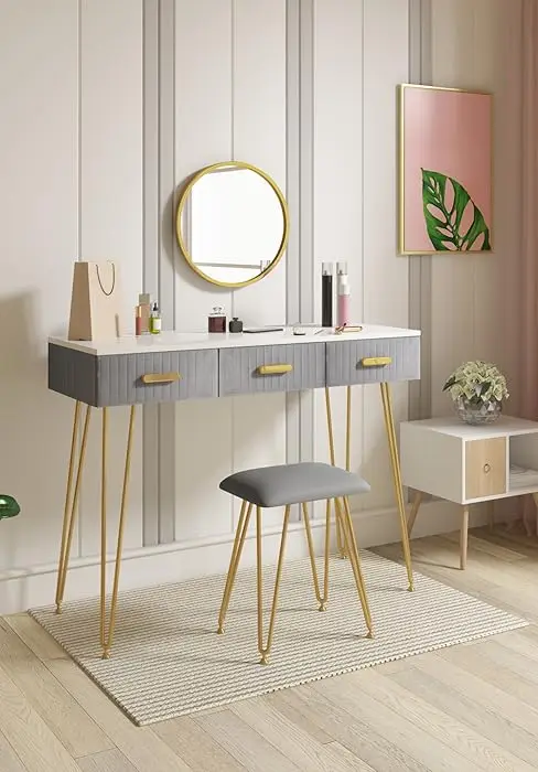 La madera de ingeniería de alta calidad y los fuertes marcos metálicos proporcionan a este tocador una estructura estable y resistente.