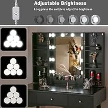 Tocador de Maquillaje Tocador con Luces LED de 3 Colores con Brillo Ajustable 10 LED Escritorio Grande de Maquillaje con Cajone