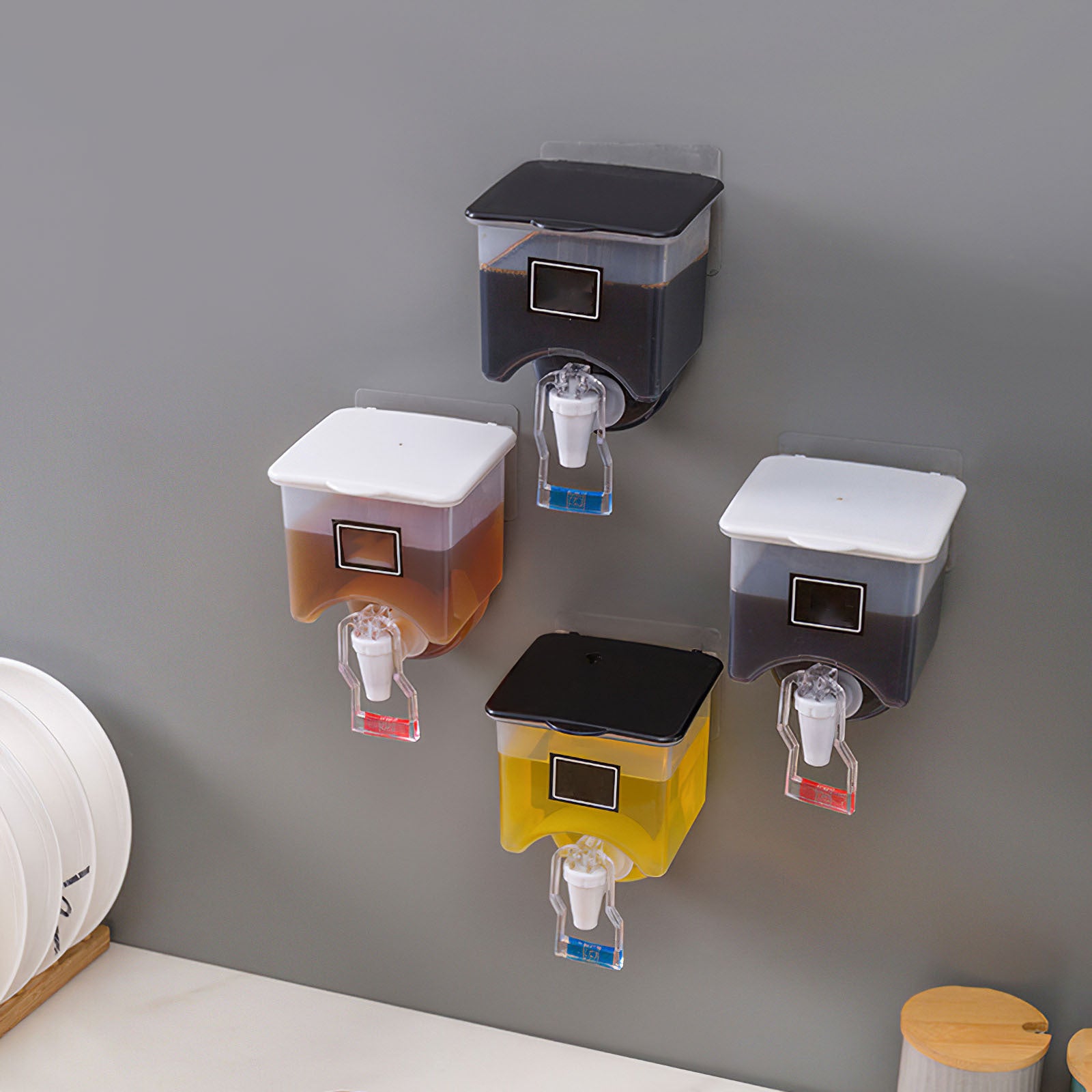 The seasoning containers adopt a wall-mounted design, which is spacing saving and will take up the space of the countertop, very practical.