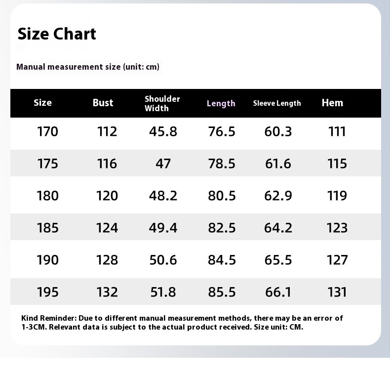 Size: 170/M,175/L,180/XL,185/2XL,190/3XL,195/3XL