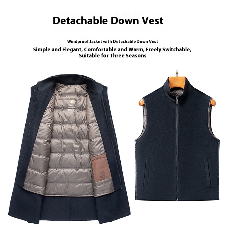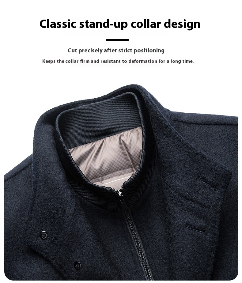 Winter Men's Detachable All-matching Thickened Cold-proof Wool Coat