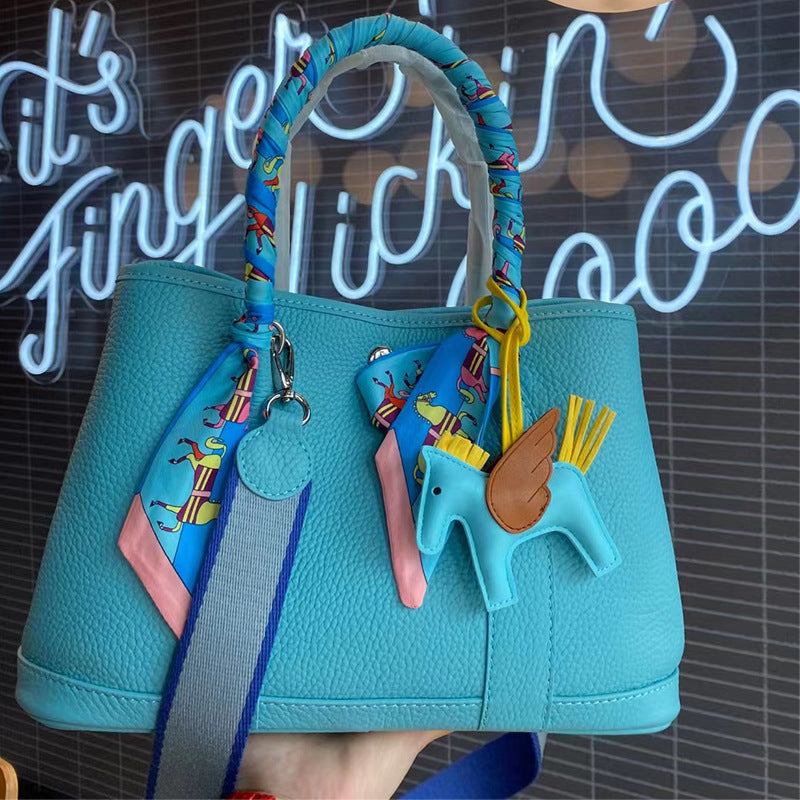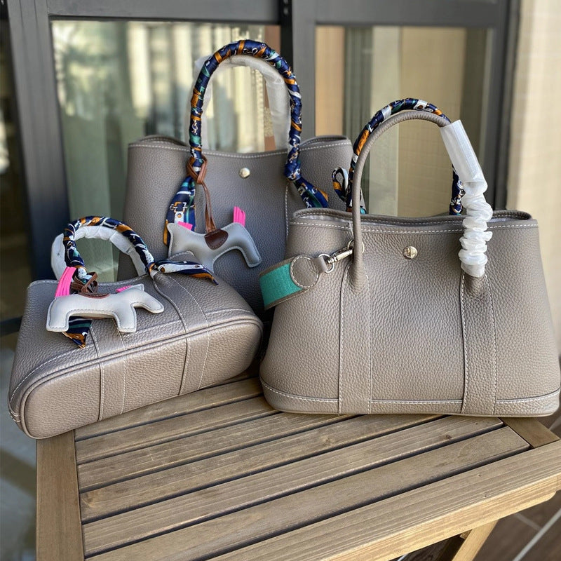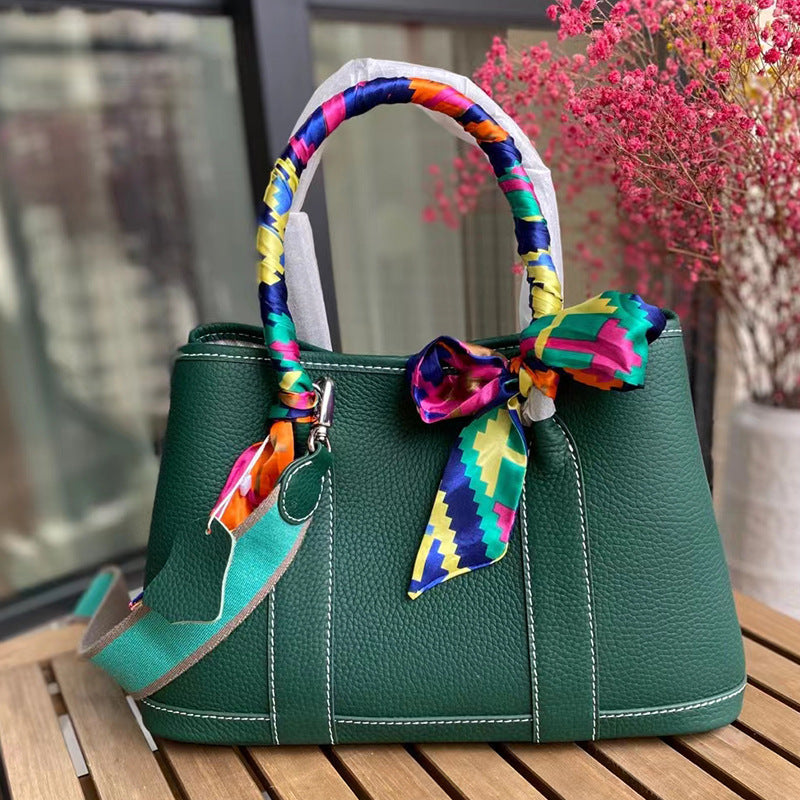 Women's Fashion Leather Lychee Grain Head Layer Cowhide Handbag